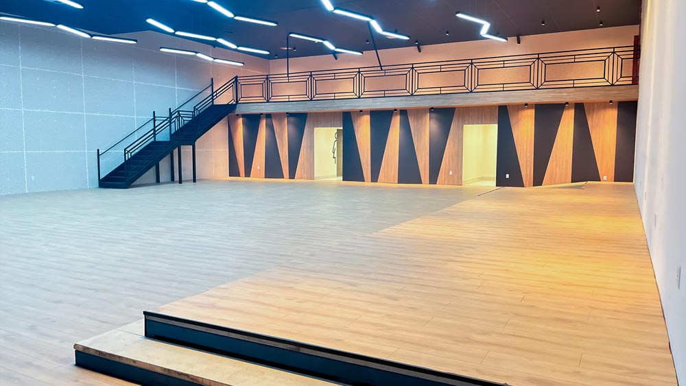 Mezanino para equipe de som, vídeo e iluminação, assegurando qualidade e profissionalismo em cada detalhe.